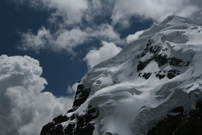 בגשם שוטף הגענו אל הר עצום עם קרחון ולגונה מתחת, עקרונית זו הייתה אמורה להיות נקודת הלינה שלנו, אבל בגלל שהלגונה הייתה מוצפת אז המשכנו ללכת שעה למחנה.