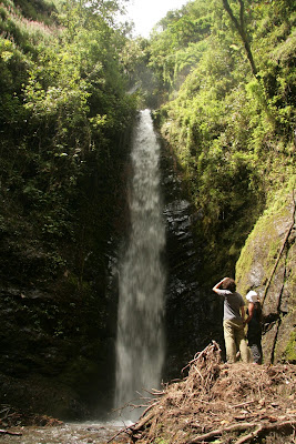 אחרי שעתיים של עליות רבות הגענו אל היעד - מפלים יפים מאוד בתוך סבך ג'ונגל, אכלנו שם בננה.